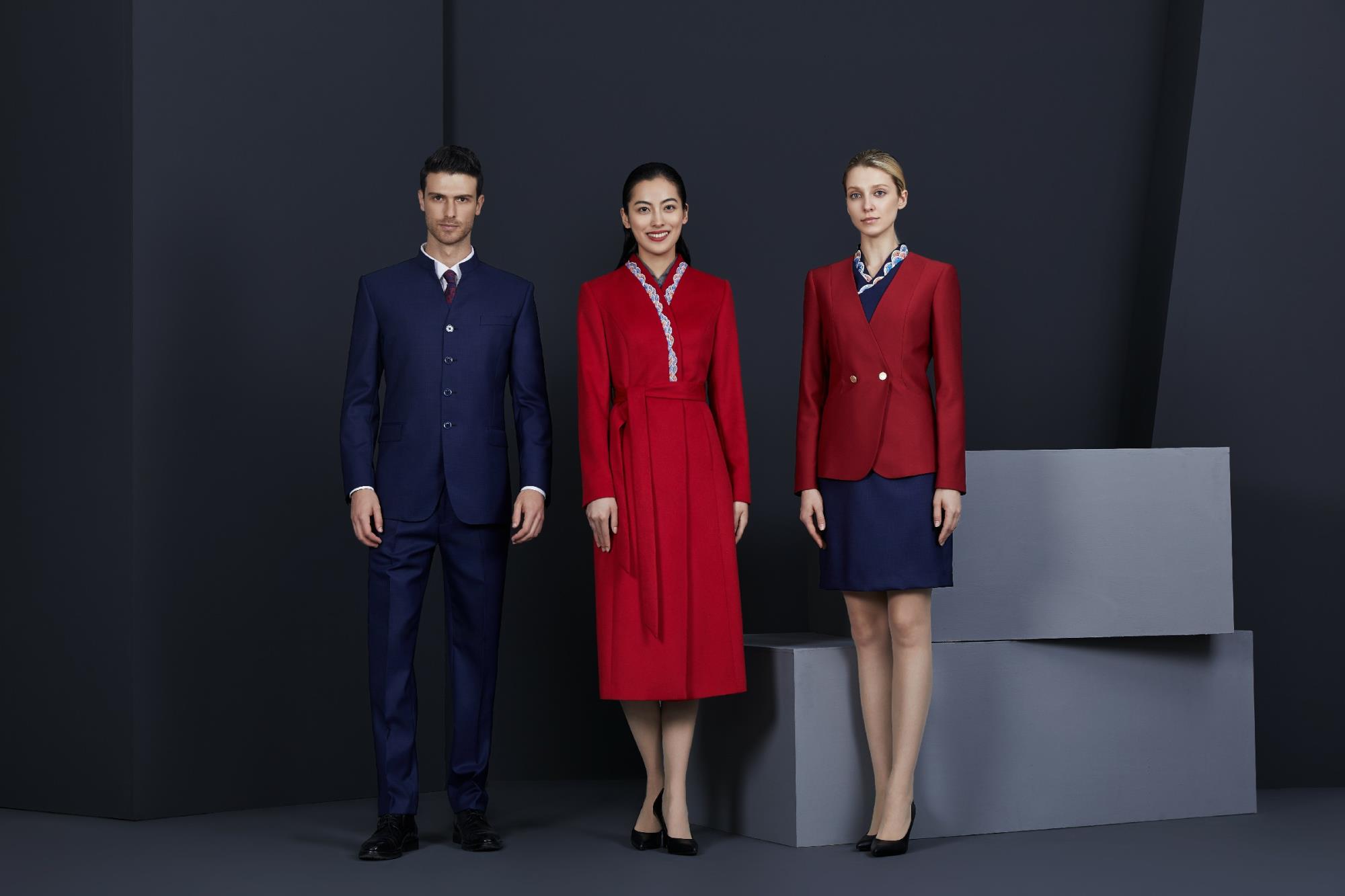 中國紅空乘女裝三件套