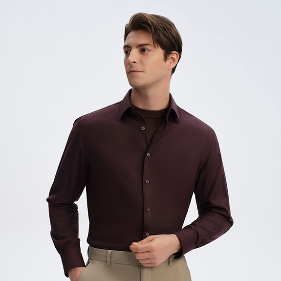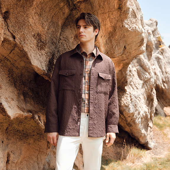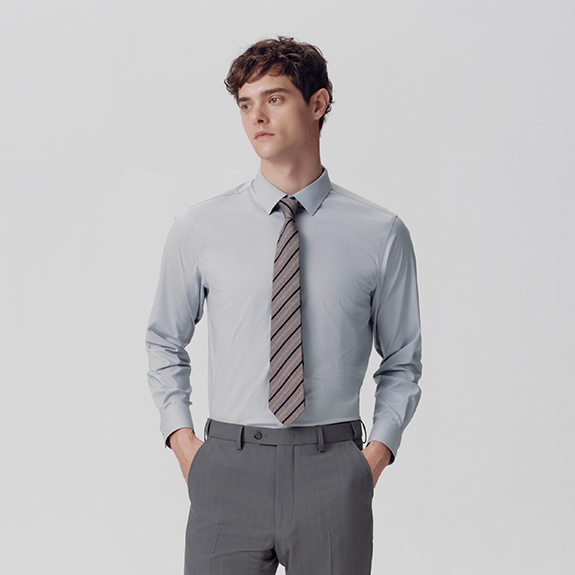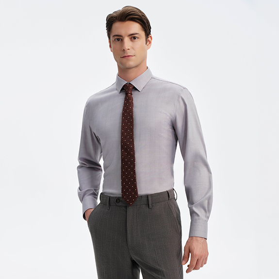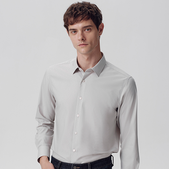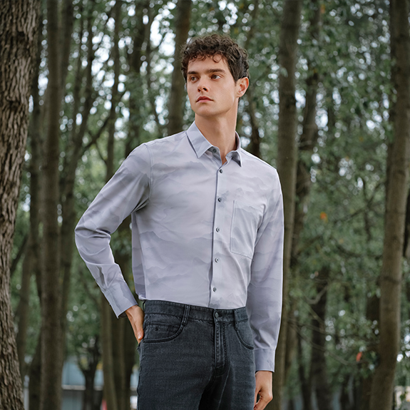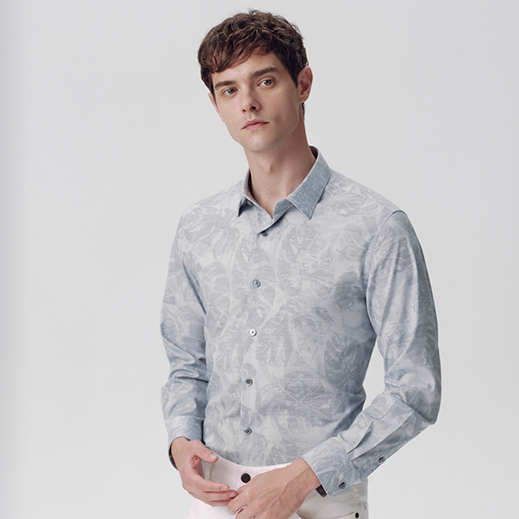 經(jīng)典版型灰印花/麻紗長袖男襯衫