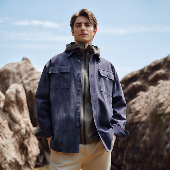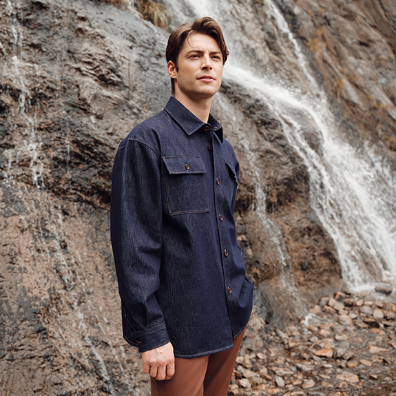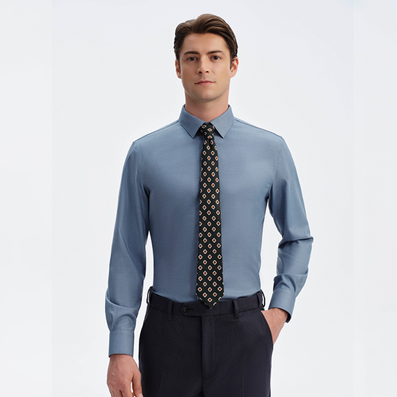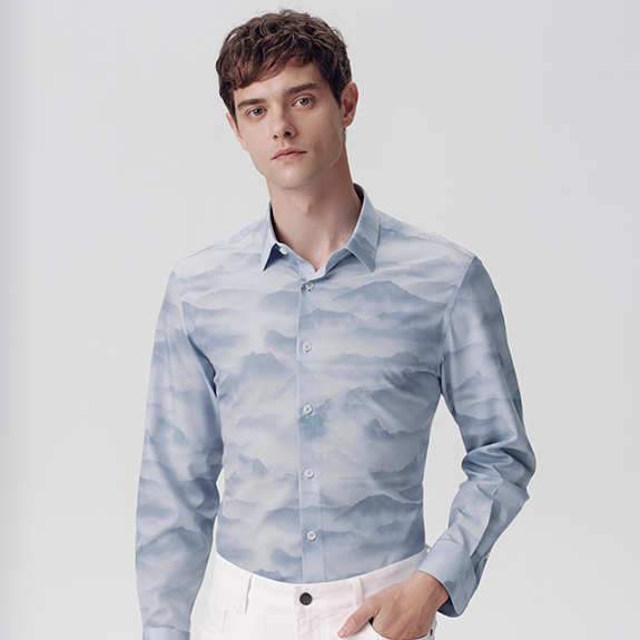 經(jīng)典版型藍(lán)印花/麻紗長袖男襯衫