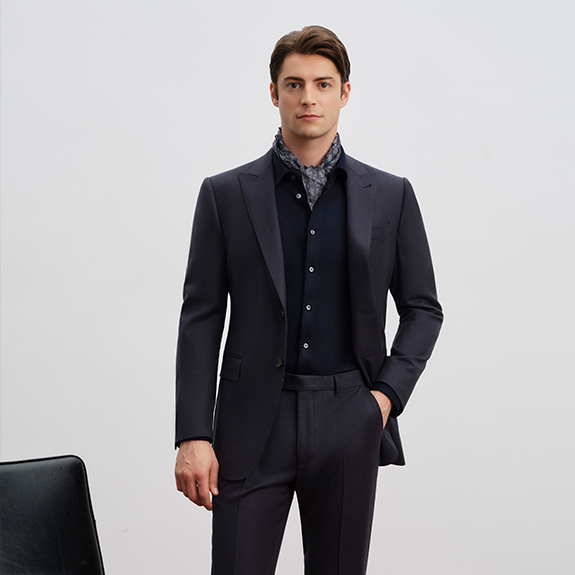 深灰藍(lán)修身版時(shí)尚系列兩件套
