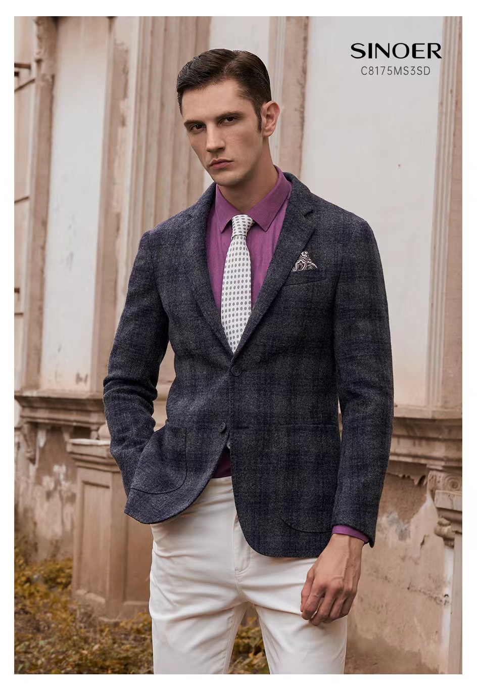 時尚粗花呢格紋便西