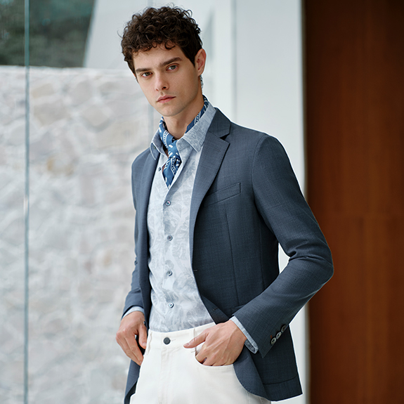 時尚系列藍灰色修身版便西
