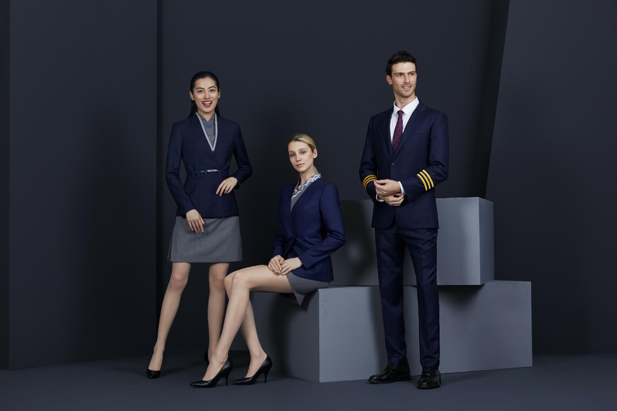 深藍色航空女裝三件套