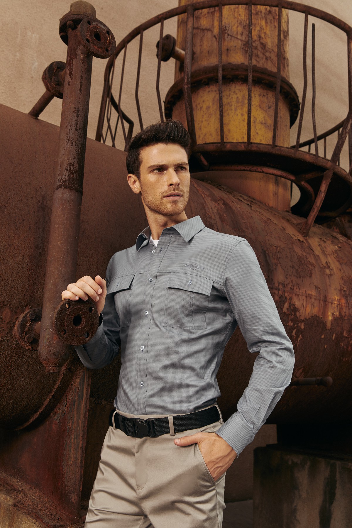穿著整潔且有質感,凸顯硬朗帥氣。