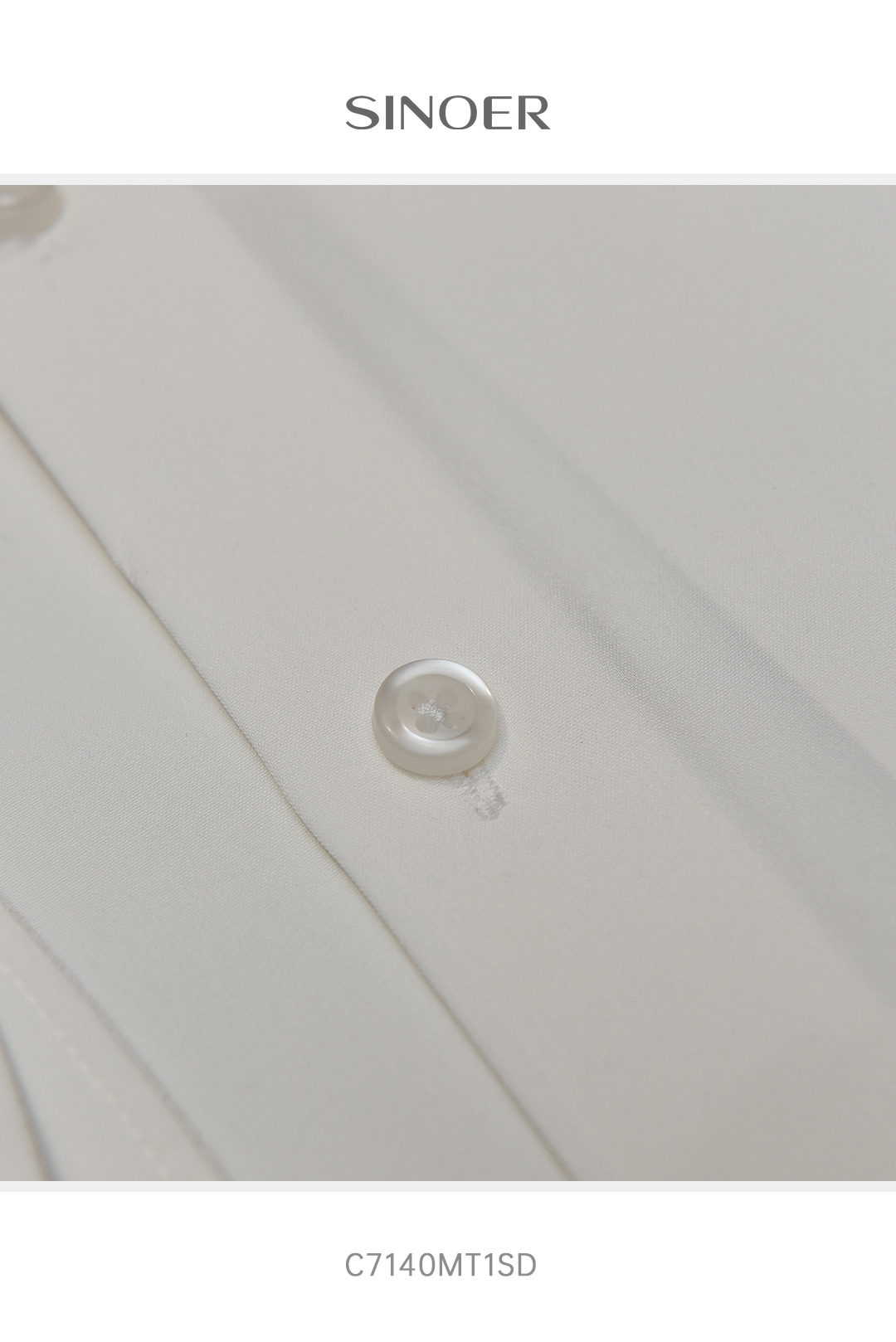 精致美式小方領(lǐng),暗翻門襟,前胸?zé)o口袋無繡花,時尚修身版型,通勤百搭款,提升職場形象必備單品。