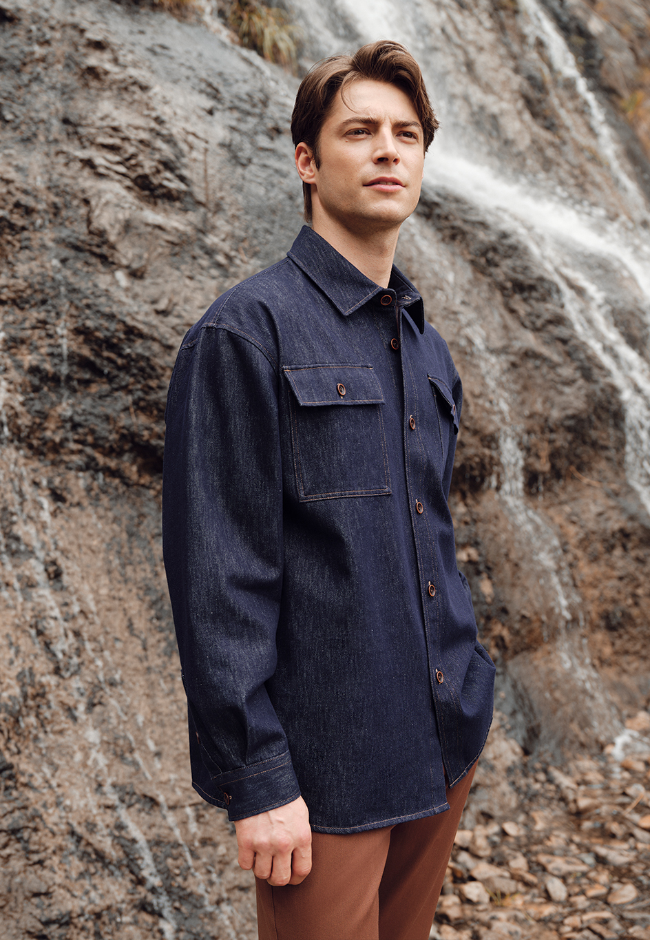 頂級水洗工藝,廓形牛仔外穿襯衫,經典撞色縫線設計,雙貼口袋,秉承經典與創新相融的設計,演繹復古、優雅的服裝調性,詮釋美好的慢生活及舊時光。