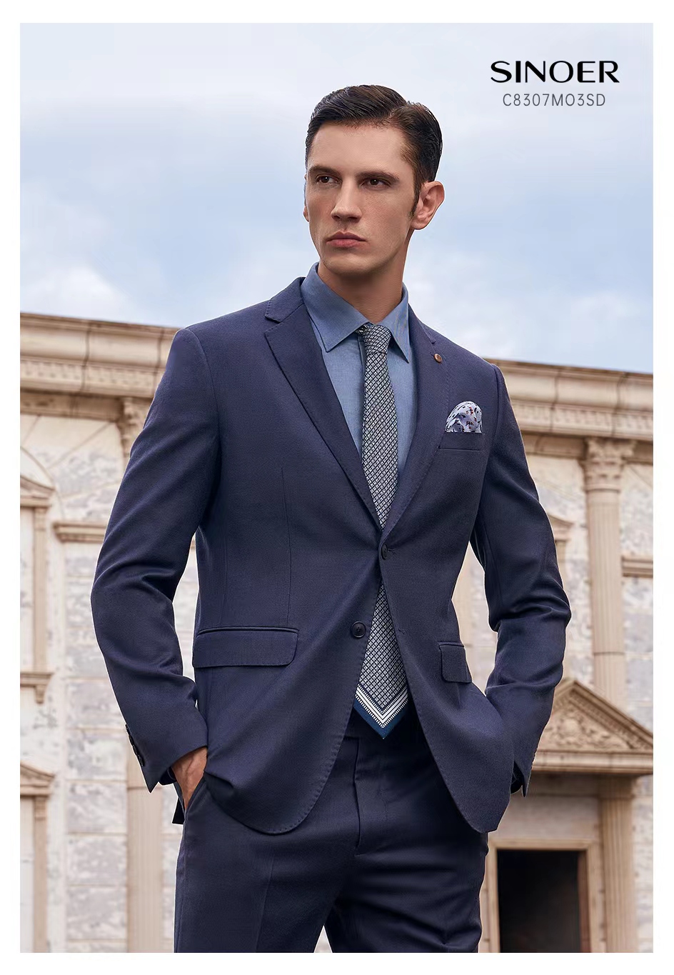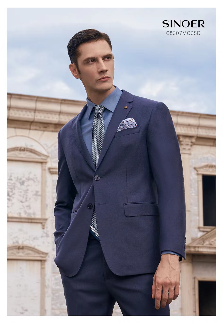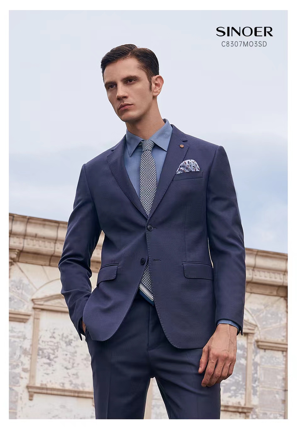經典平駁頭、經典版型,單排兩??邸⑾挛鞣倍怠⑺牧P淇劭钍?,撞色里開里墊和內里珠點線,配套西褲采用全新腰里結構設計,搭配滑鏈滑腰設計使穿著更加舒適。