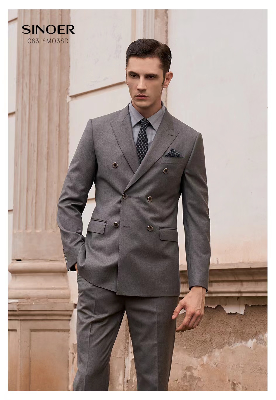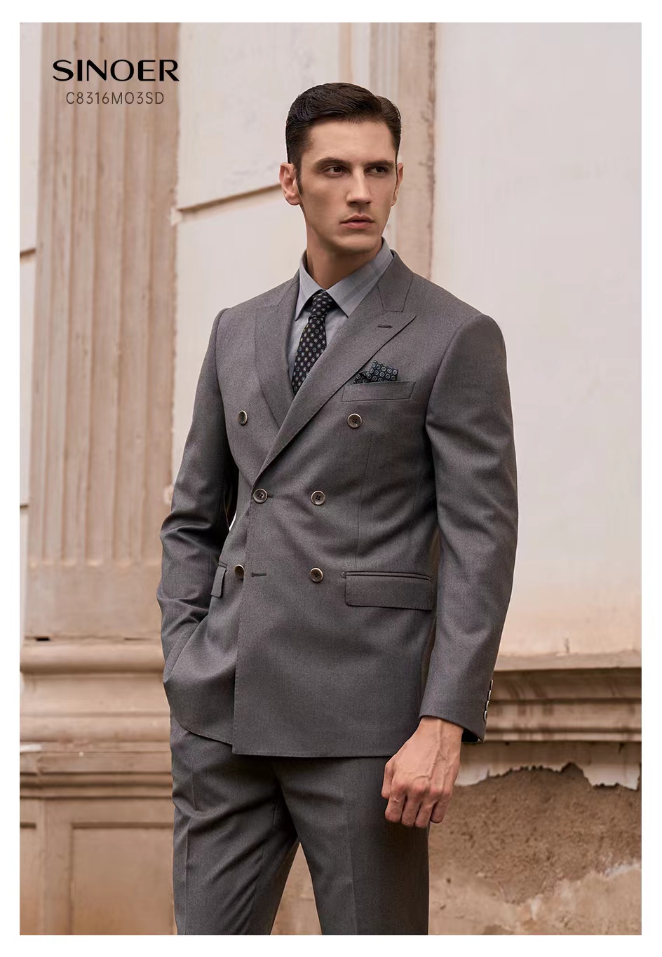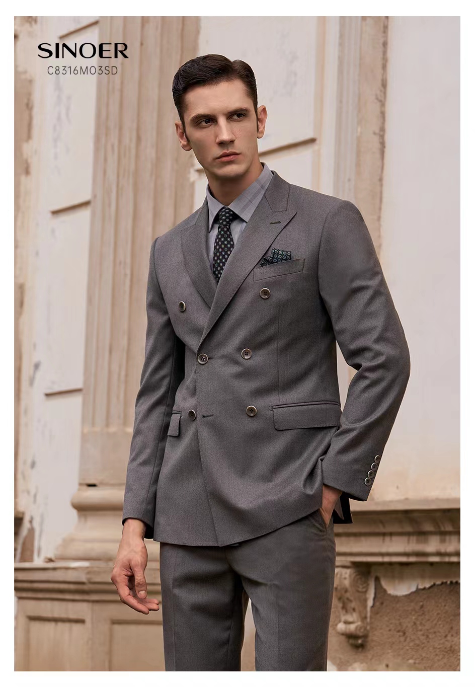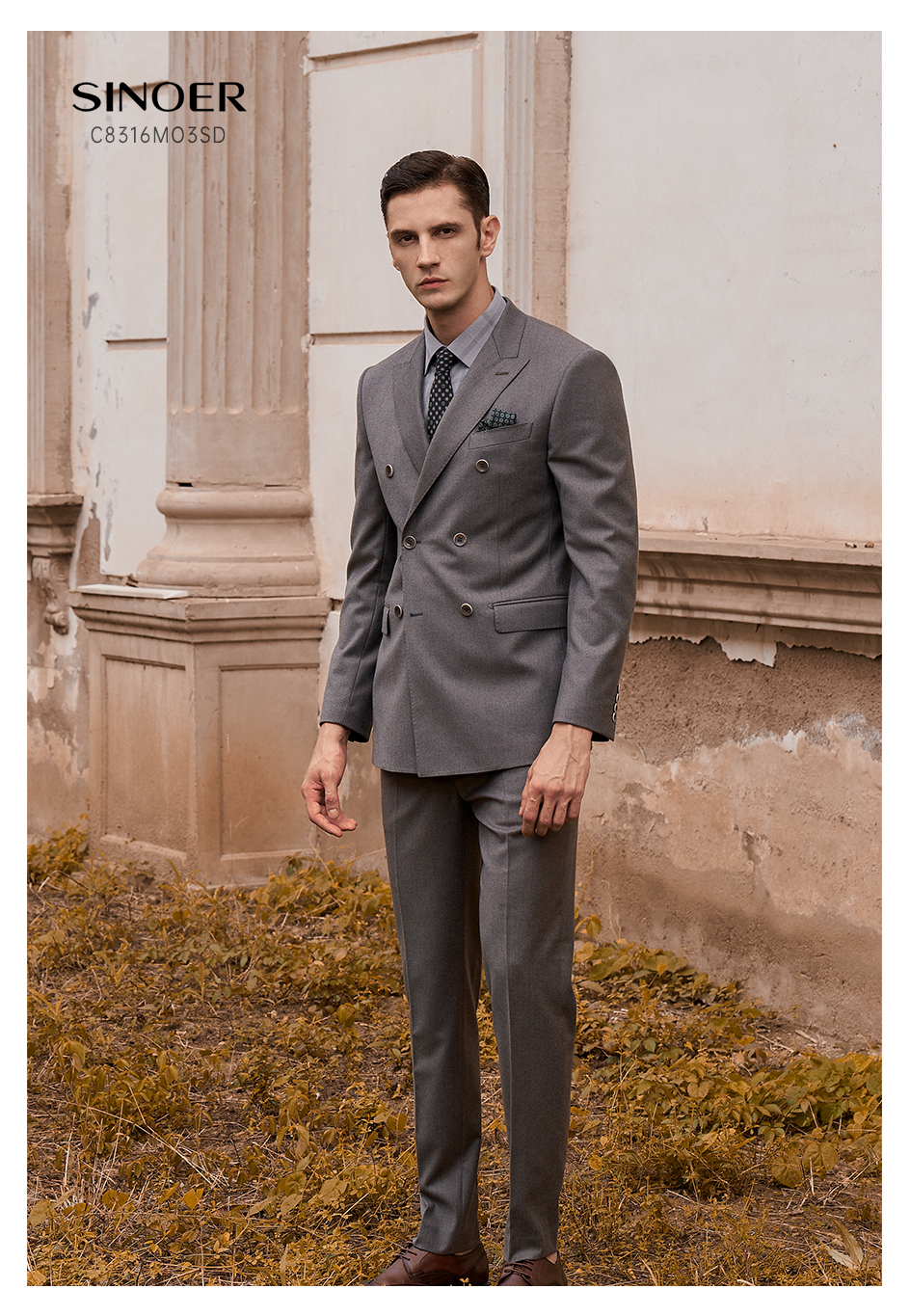 時尚戧駁頭、經(jīng)典版型,雙排六粒扣、下西服直兜、四粒袖扣款式,內(nèi)里采用彎掛面設(shè)計撞色里開里墊和內(nèi)里珠點(diǎn)線,配套西褲采用全新腰里結(jié)構(gòu)設(shè)計,搭配橡根滑腰設(shè)計使穿著更加舒適。