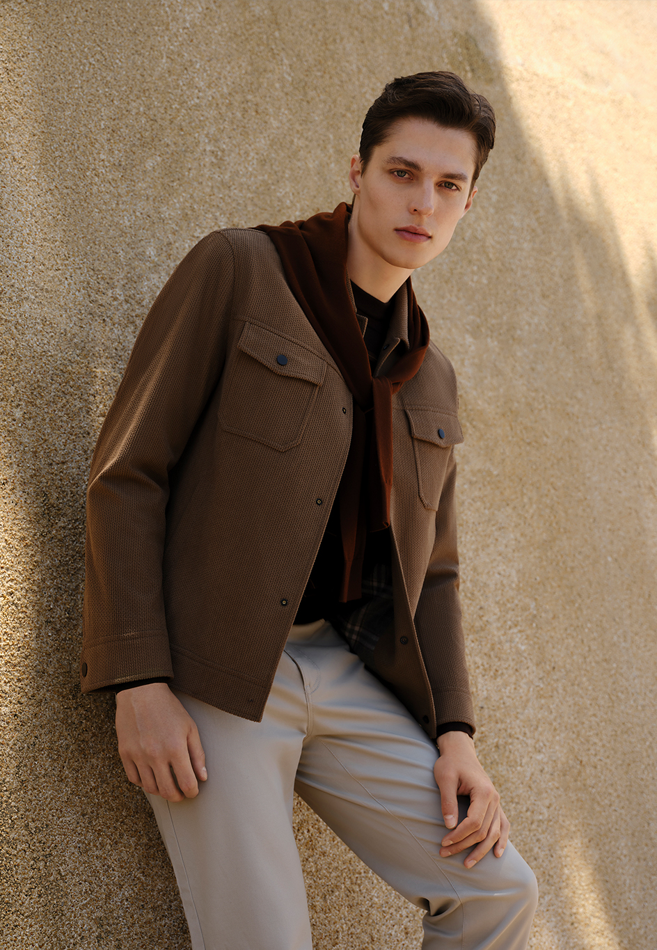 休閑工裝茄克,工裝翻領(lǐng),上端經(jīng)典雙工裝貼兜,下端兩側(cè)使用斜插兜,儲(chǔ)納實(shí)用,筒袖口簡約舒適,貼心內(nèi)兜設(shè)計(jì)安全方便,內(nèi)里拼接時(shí)尚,層次豐富。