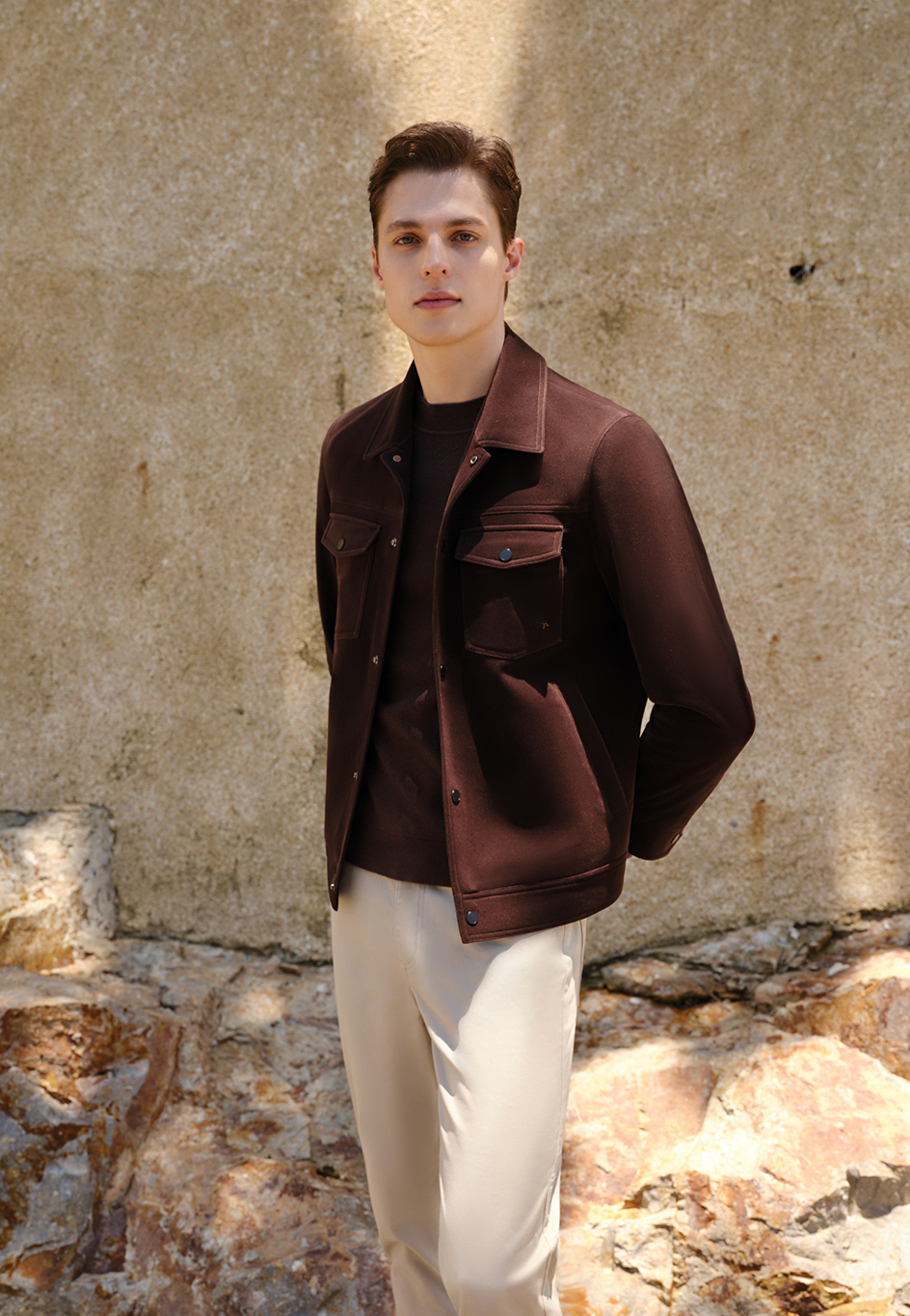 休閑工裝茄克,工裝翻領,上端經典雙工裝貼兜,下端兩側使用斜插兜,儲納實用,筒袖口簡約舒適,貼心內兜設計安全方便,內里拼接時尚,層次豐富。
