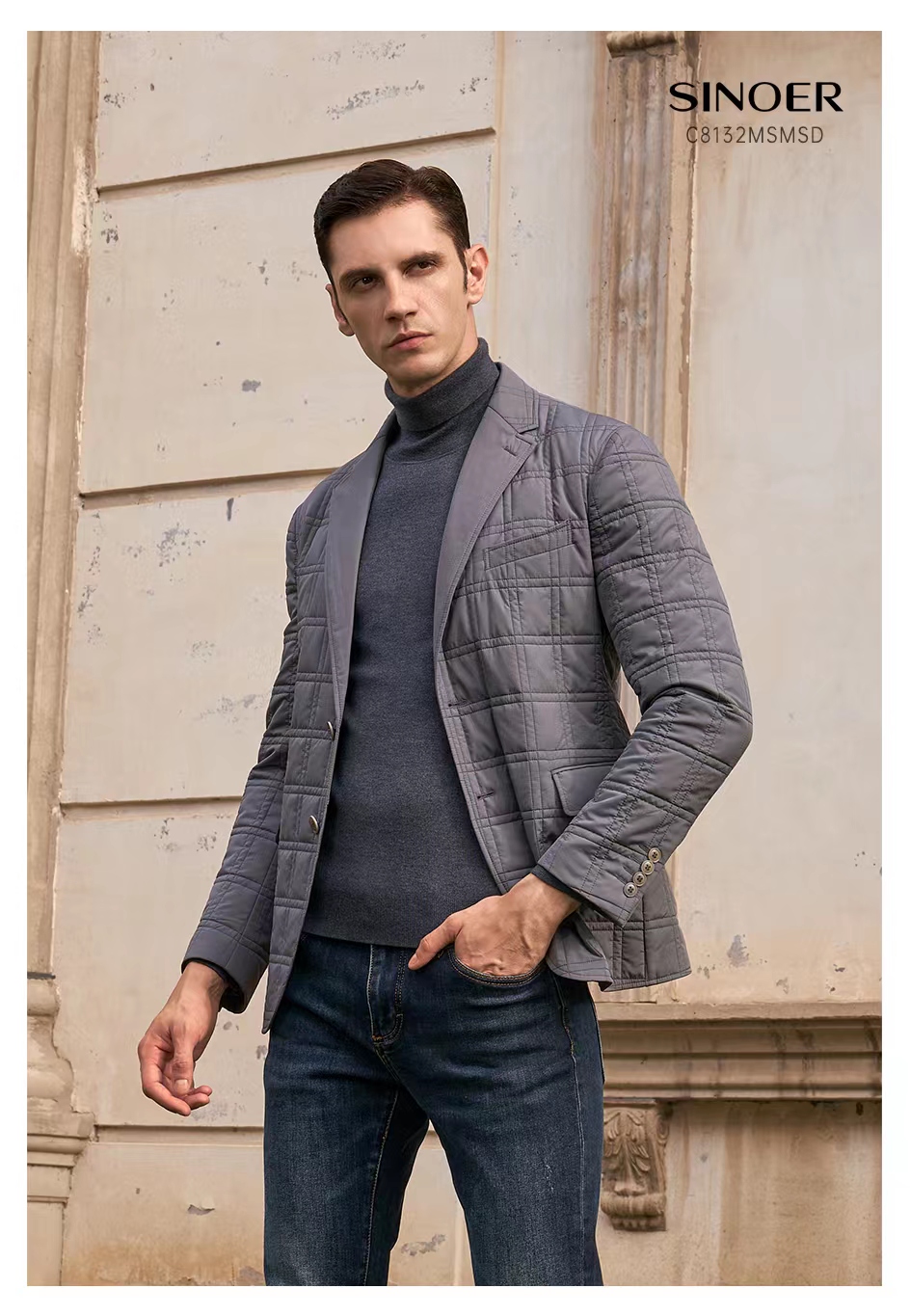 時尚感十足的絎縫便西,平駁頭單排兩粒扣款式,絎縫壓線設(shè)計考究,時尚有型,既可外搭亦可內(nèi)穿。