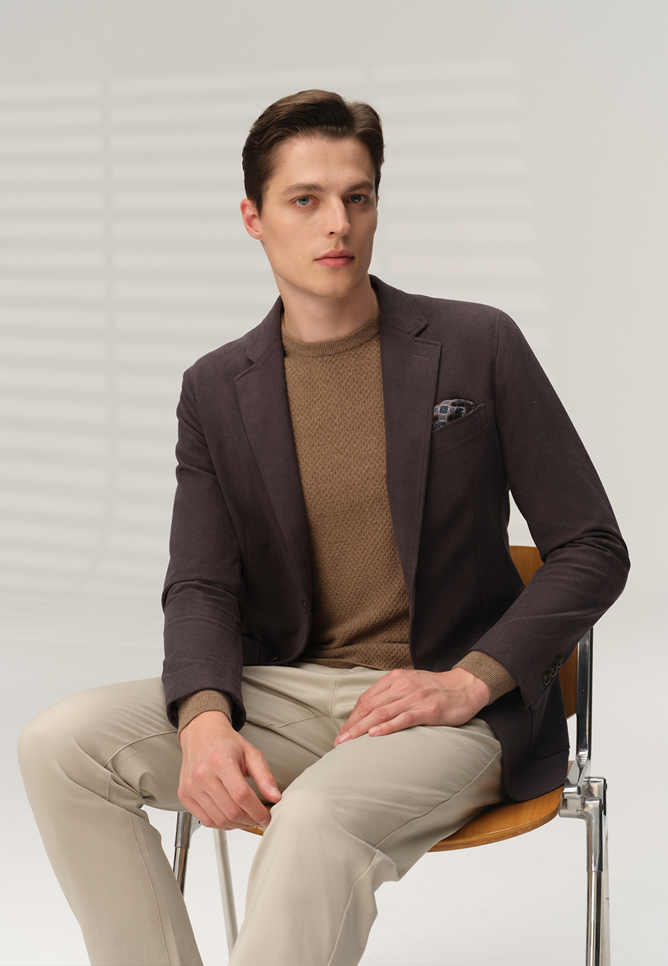 經編工藝,紋理清晰,肌理感強。保證面料抗皺性能的同時,亦增加了衣物彈性,穿著后用SINOER專用衣架晾掛即可恢復原樣。如新柳之姿,姿態如初,謙謙君子莫過于此
