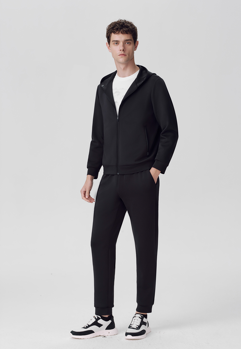 衛衣:運動連帽拉鏈衛衣。連帽配有彈力繩收縮扣,采用滌氨抗皺空氣層面料。兩側斜拉鏈插兜,年輕且運動感強。外穿內搭均可,簡約時尚,穿著輕便易打理。滌氨抗皺空氣層面料相較于普通空氣層面料更加不容易變形。它結合了聚酯纖維(滌綸)和氨綸的優點,具有出色的彈性和恢復性,即使經過多次洗滌和穿著,也能保持原有的形狀和質感,不易起皺,非常適合日常穿著或運動時使用。