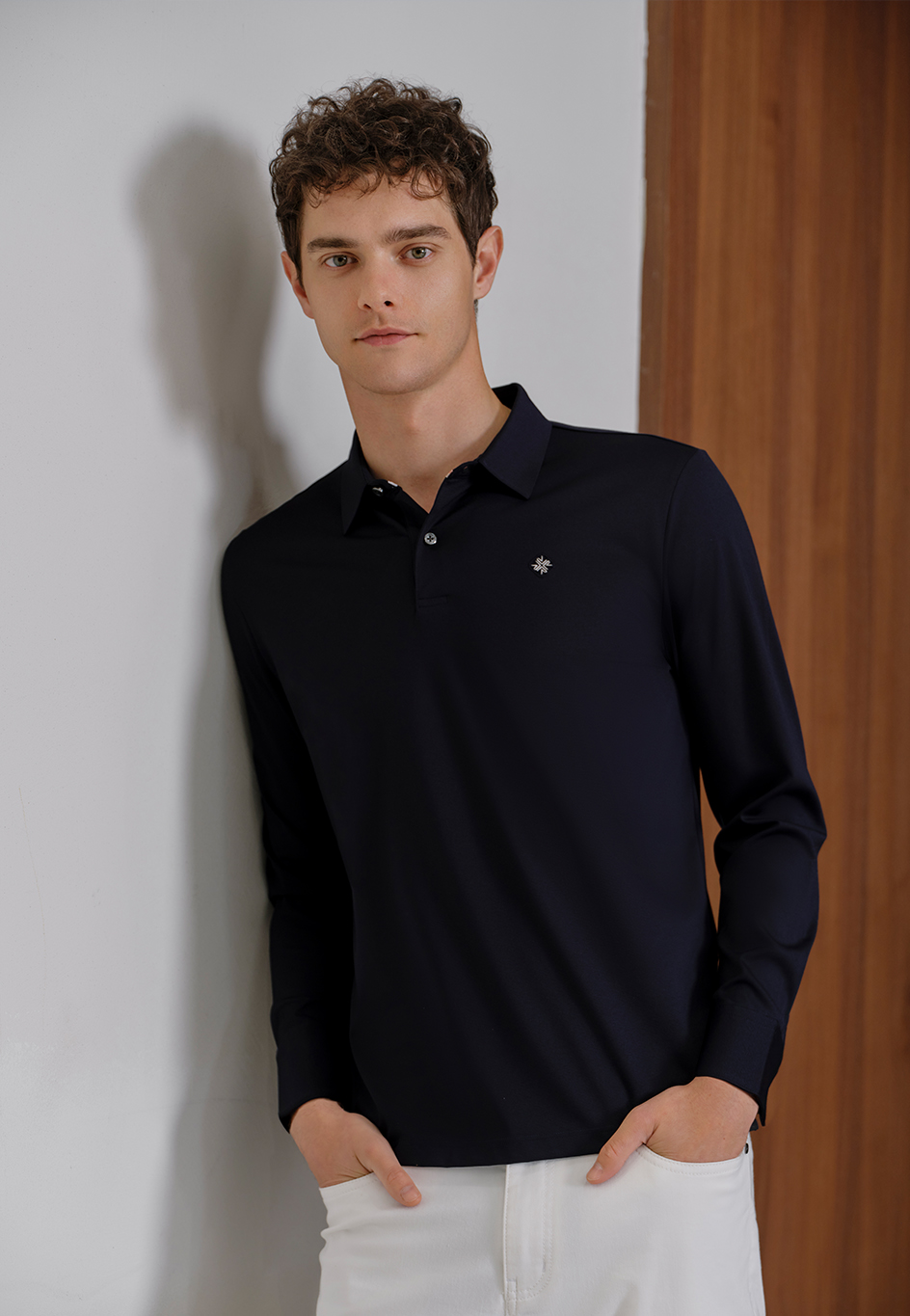 整件為純色原身布領3個扣T恤款,簡約,協調,大方!